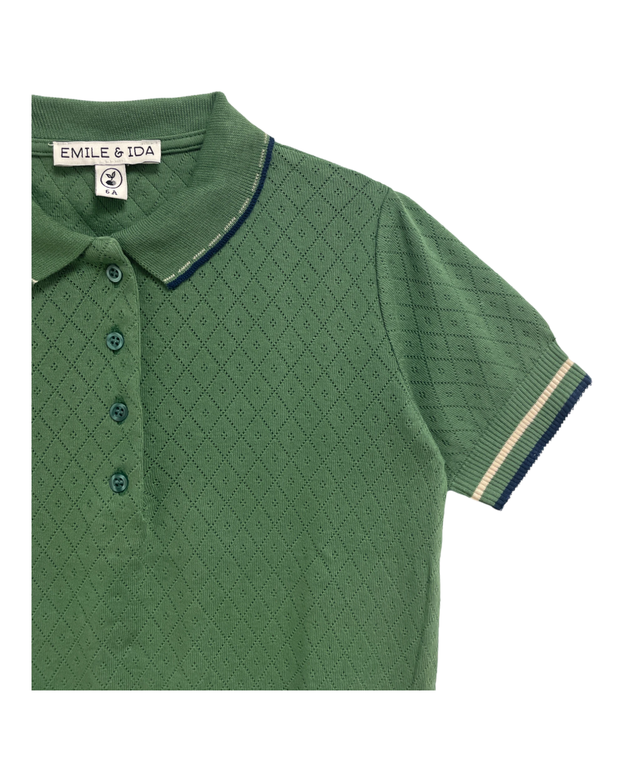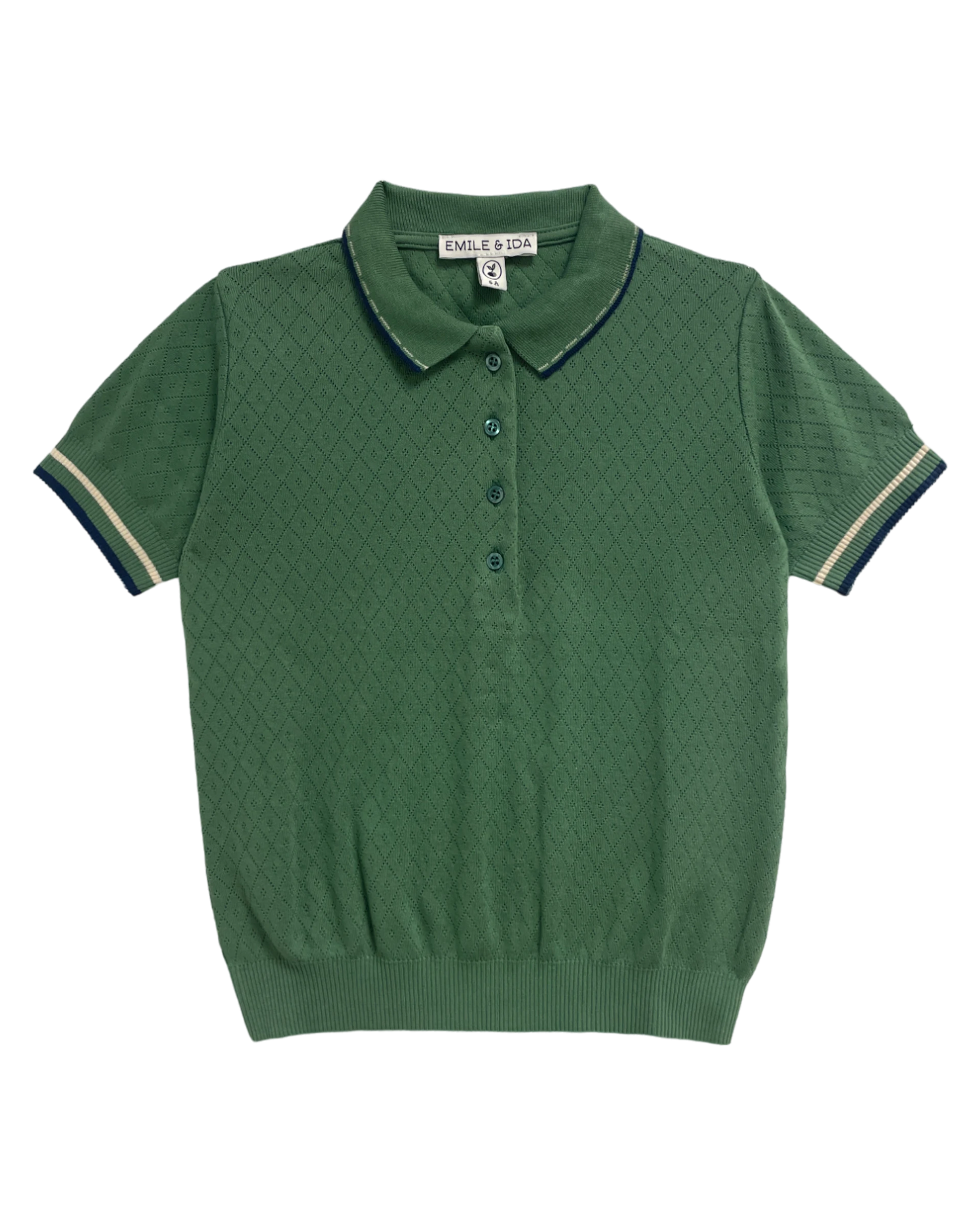Emile et Ida Boy Dark Green Pointelle Modal Polo Shirt | Baobab